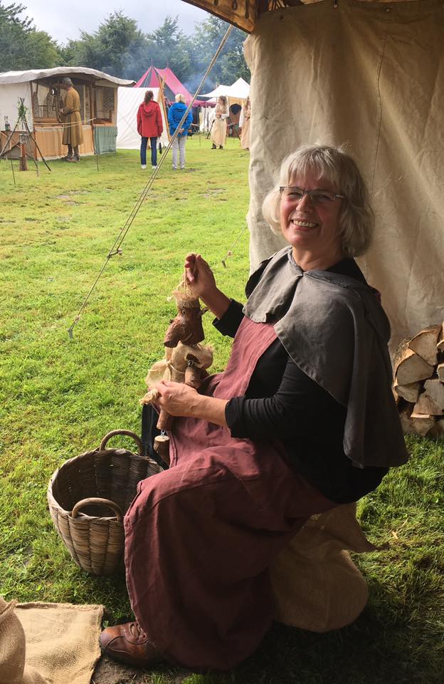 Für den Markt in Hengsterholz bei Ganderkesee haben wir mit Vera Menzen (welche hin und wieder als Gastmusikerin mit Geige, Flöten und Gesang mit uns auftreten wird) ein komplett neues Programm zusammengestellt. Da Vera viele Jahre mit Fogelvrei als Clownesse Antonja unterwegs war, lag es nahe, ihr Showtalent mit einzubauen und so entstand die Holzpuppe „Piet“, welche unser Programm mit Entertainment bereichert. Samstag regnete es immer wieder, aber wir bekamen Obdach in einem Lager mit großem Dach. Leider konnten wir wegen der Witterung Anjas Harfe nicht verstärken, was unsere musischen Möglichkeiten etwas einschränkte. Ausserdem schlug das Wetter den Instrumenten auf die Stimmung – weil sie sich vollsogen wie ein Spielmann an der Taverne. Sonntag war besseres Wetter und wir konnten unter freiem Himmel auftreten.